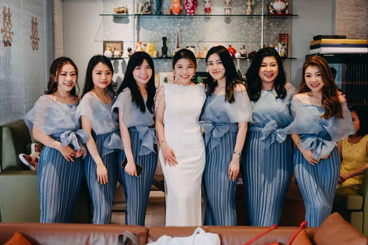 左至右:Miranda Kuek, Eileen Goh, Lim Shu Ping, Rosanna Kuek, Heng Shi Qi, Rosabel Kuek, Mathilda Kuek.