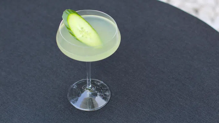 位于香港奢华酒店奕居(The Upper House),著名的高空酒吧Cafe Gray Bar分享特调鸡尾酒配方,融合了琴酒、青柠汁、薄荷叶和青瓜,充满夏日风情的鸡尾酒,令人心旷神怡。