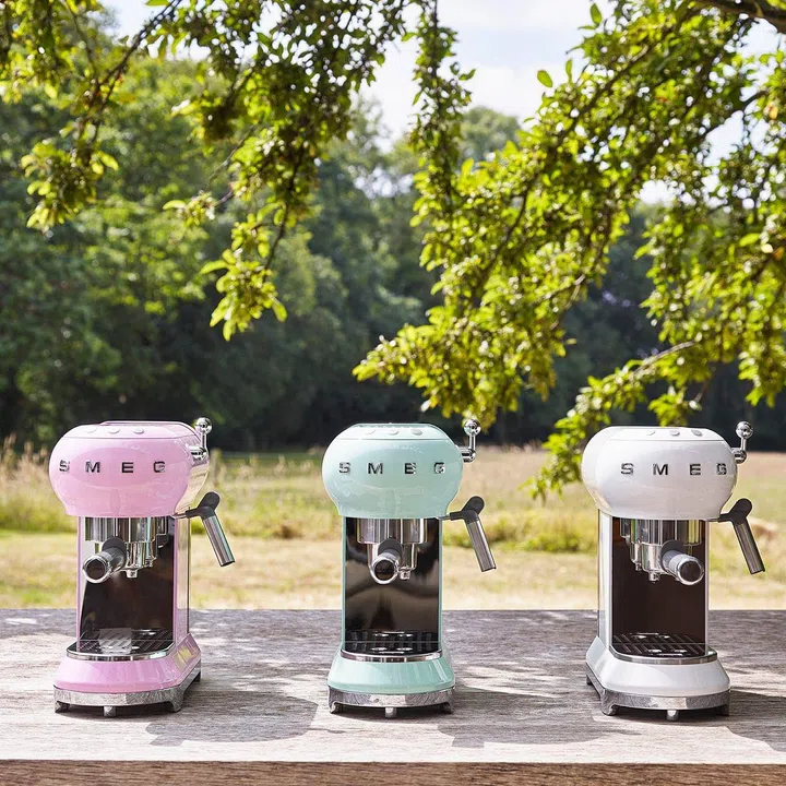 意大利家电品牌SMEG,擅于将生活美学通过家电融入居家空间,其中粉色缤纷的冰箱一直是品牌人气王牌。其半自动的意式咖啡机ECF01也非常养眼,洋溢俏丽复古的风格,并有多款配色可选。操作面板仅3个按钮,分别为单杯、双杯会让蒸汽奶泡,没有多余复杂功能,初入门的新手也适用。
