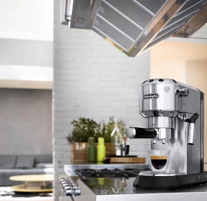 Delongh半自动泵压式咖啡机EC 680,性能可说相当齐全,可萃取意式咖啡,也具备打奶泡功能,制作不同的咖啡饮料。不锈钢外壳,带着简洁专业的酷感,另一优点是非常轻巧,不占位置,移动也非常方便。此外,独有的Thermoblock 技术可精准控制水温,让你在家也能轻松调制一杯完美的特浓咖啡。