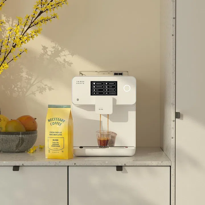 生活已经够忙,居家喝一杯咖啡,只求简单,不要耗费太多时间,跳过复杂功能,省略繁琐过程。由一群咖啡爱好者创立的纽约品牌Terra Kaffe,打造的这款咖啡机TK-01,号称一键就能调制出咖啡师级的饮料,包括卡布奇诺、拿铁和意式浓缩咖啡等。咖啡机使用完整咖啡豆,而非一次性的咖啡胶囊,以保持优质的咖啡味道,同时减少塑料浪费,为环保献一份力。