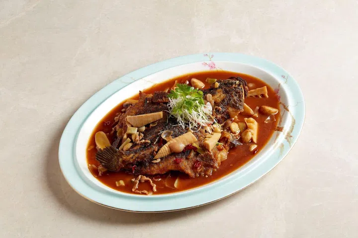 藝 yì by Jereme Leung 农家烧竹笋笋壳鱼 Taizhou Style Slow-braised Whole Soon Hock Fish with Bamboo Shoots and Shanghai Rice Cakes