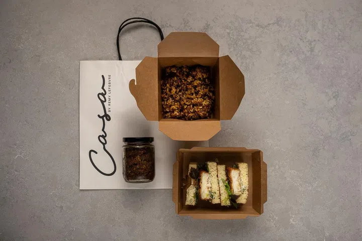 今年6月底新开张的这家餐馆由Chef Remy Lefebvre掌舵,料理以主厨的成长经历以及早期的烹饪生涯为灵感,并选用传统农作、有机、野生及生物动力学耕种的食材。适合1-2人享用的Casa Fish Sando套餐提供炸鱼三文治配塔塔酱(Fish Sando & Tartare Sauce)、Clara Sofrito Rice炒饭配Sofrito酱(西班牙特制番茄洋葱酱汁)及一罐Casa自制XO酱。适合四人享用的Casa Living Room套餐,则包括伊比利亞火腿配面包和番茄(Joselito Iberico Ham with bread and tomato)、Freres Marchand乳酪拼盘、烟熏鱒魚(Smoked Petuna Trout)等,搭配调味品,任选一瓶酒。另外也有单点外卖菜单供选择。消费满$350可享免费送餐服务。