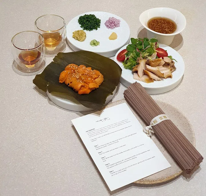 新开张不到一个月、主打现代首尔料理的韩式餐馆NAE:UM为了迎合新措施,也推出一系列新品供外送或外带。Bansang是韩国料理中与米饭一起食用的小菜的总称,NAE:UM的版本提供8种小菜(适合1人享用),每周更换菜品。首先推出的是烤肉Bansang,食客可从西班牙黑毛豬梅花肉、爱尔兰鸭及和牛中挑选一样,搭配韩式和牛肉海带汤、自制白辛奇(baek kimchi)、腌制黄瓜、腌制菠菜、辛奇饼、迷你duck galbi鸭肉饼、红枣法式千层酥。Somyeon Kit则让你在家轻松复制餐馆堂食菜单中的重点佳肴之一——韩国素面配海胆。DIY料理包中提供两人份素面、调味酱料、50g海胆以及鲍鱼Mulhwae(生鱼汤)和酱汁。另,一提到韩国餐,大部分人首先想到的一定是烤肉。每天限量推出的NAE:UM BBQ套餐提供由团队研发的酱料腌制的优质肉类以及供大家包裹肉一起吃的生菜。餐馆也计划尽快推出单点外卖菜单。消费满$150免费外送。