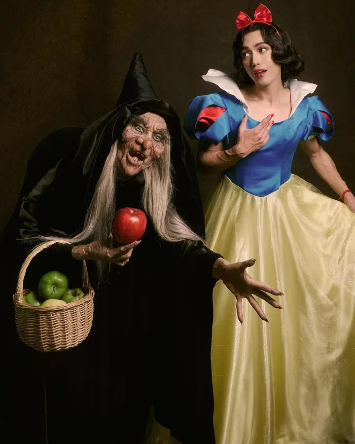 她是谁?台湾博主Molly Chiang与作家好友Peter Su化身《白雪公主》中的坏巫婆和白雪公主,她的特效造型非常逼真,根本认不出是她!