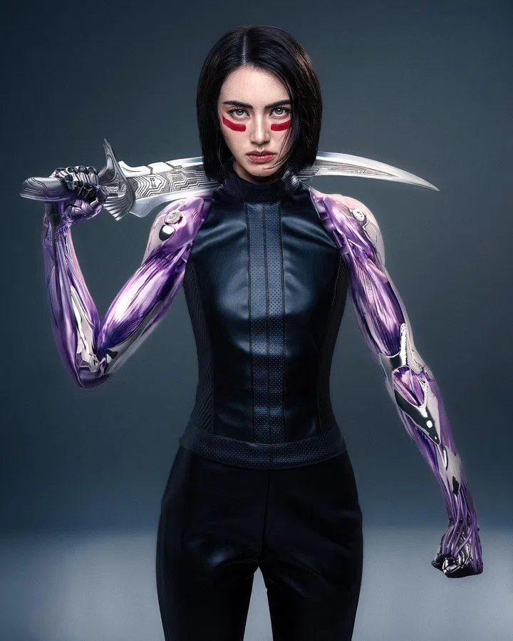 泰国女星Davika Hoorne扮起2019年科幻电影《阿丽塔:战斗天使》(Alita: Battle Angel)中的女主角,充满霸气。