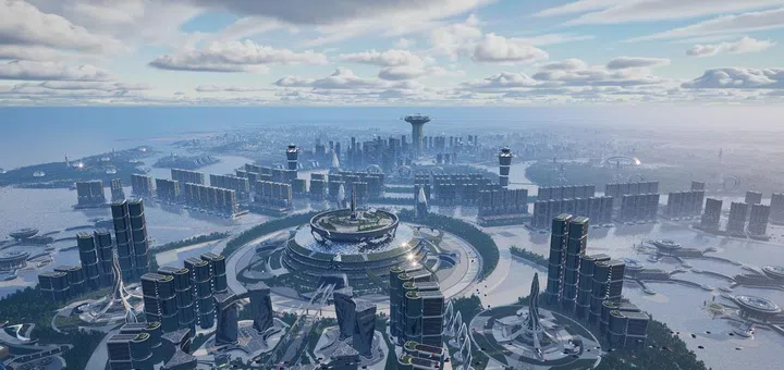 另外,展览后段以大屏幕播放了一段2123年愿景,大众可以在观看后参与扩增实境(Augmented reality)影像拍摄一段乘坐飞船游历未来浮动城市趣味影像。