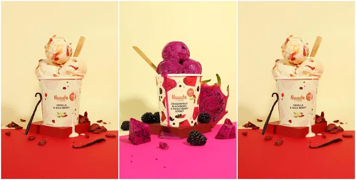 本地冰淇淋品牌Udders推出健康冰淇淋品牌Nuude,据说最低每勺仅含79卡路里的热量,等同于1杯蓝莓的热量,且比一般冰淇淋少高达43%的脂肪和糖含量。目前产品包括全素食的白桃、柚子、以及少见的火龙果风味雪葩,另外还有开心果抹茶、黑巧克力可可、青柠芒果、蜂蜜草莓、香草浆果等口味,均可在Udders分店和网站购得,油站、Fairprice Finest和Eccellente by HAO mart也有售。