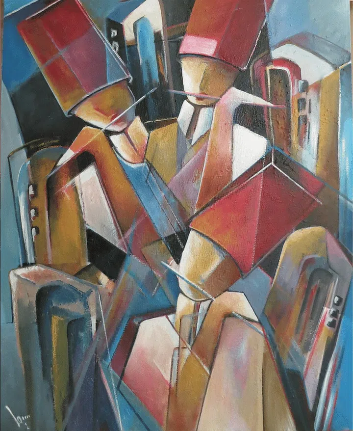 巴林艺术家协会会长Ahmed Anan的作品“Human",人物是他一贯的创作主题。