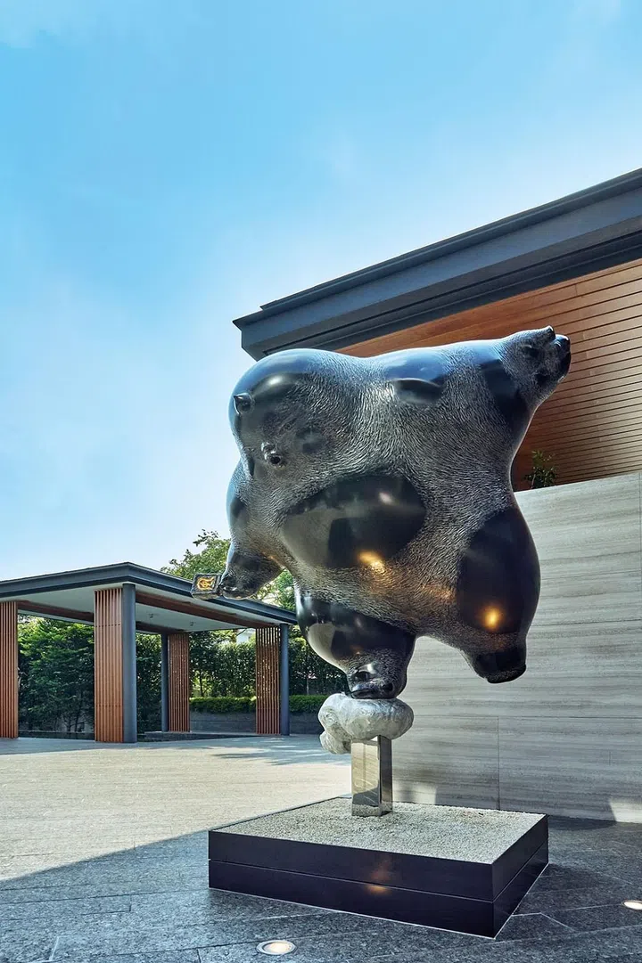 台湾雕塑家作品伫立花园,为开放空间注入艺术感。