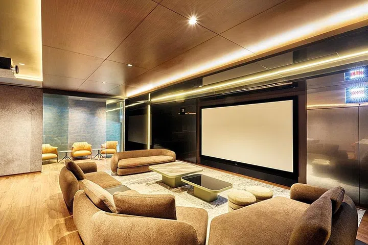 二楼分别是主卧、三个孩子以及保留给母亲的卧室等五间卧室和小厅所组成,大宅奢简风格贯穿各楼层,这里同样采用纹路别致的珍稀花岗石作为视觉墙点缀。阁楼则分隔成健身房和让太太练习瑜伽的舒适空间。主人家对细节的关注和空间美学的拿捏精准,是摩登住宅融合美学和功能性的最佳典范。