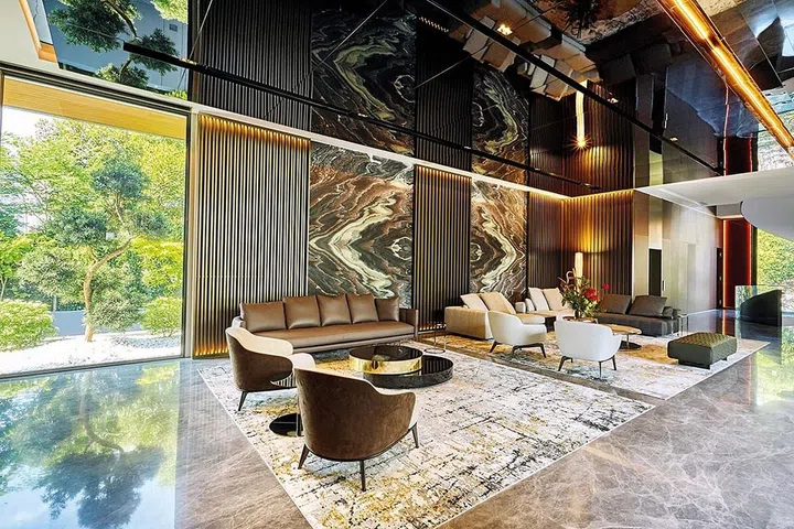 室内利用顶级大理石为主要建材,家具方面亦精挑细选,各种梦幻逸品恰如其分的摆置,昭告主人家的好品味。沙发和餐椅选用意大利顶级家具名品Molten & C和Minotti,利落内敛的线条,时尚舒适兼具。