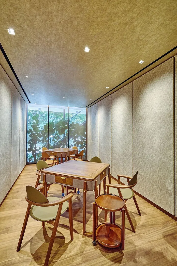 大厅角落旁则摆放了意大利名品法奇奥里(Fazioli)三角钢琴,耗时两年定制;法奇奥里向来对木料选材非常严谨,每年只产制140部钢琴,从最初的磨木、削木到最后的完成品一律由手艺精湛的职人人手制作。