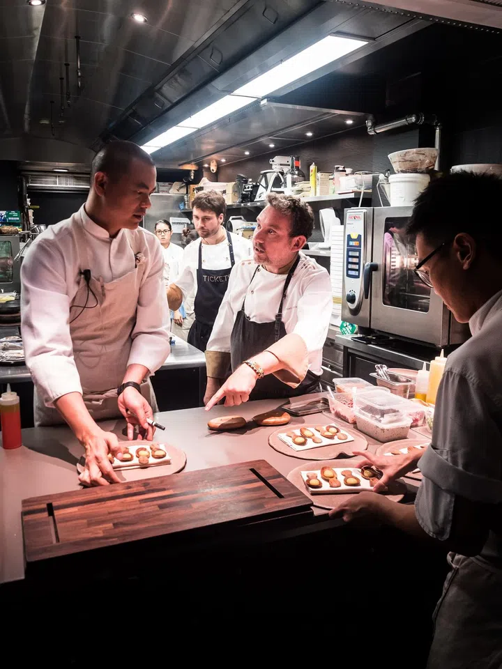 西班牙名厨Albert Adria带着他世界排名第25位的餐厅Tickets来到Restaurant Andre,与主厨江振诚(Andre Chiang)“四手联弹”。