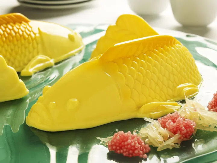 Andaz最出名的就是它不同口味的班兰蛋糕,既保留了传统风味,又在此基础上有所创新,令人耳目一新。而这次是Andaz Singapore第一次过新年,意义非同一般,酒店特别为农历新年准备了限量供应的Chinese New Year Chiffon Cake,班兰蛋糕变成橙味慕斯,并撒上了可食用金粉,两条鲤鱼在蛋糕上游玩。如此精致的蛋糕需要提前两天才能预订哦!