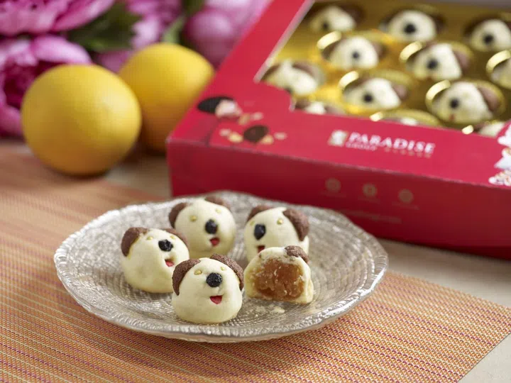 乐天餐饮集团(Paradise Group)为戊戌狗年准备了最可爱的狗形凤梨酥,有趣的耳朵,咪咪的眼睛,嘴角上扬的微笑,还有圆圆的狗鼻子,让人不断惊呼它怎么能如此可爱?!用菠萝做成的馅被塞得满满,一口咬下去,甜蜜融化在口中。还有乐天聚宝盆菜富含包括8头鲍鱼的16种珍贵食材,乐天会连带锅也让你一起外带走!当然,乐天鲍鱼捞生也不会少,还有包括年糕、萝卜糕与芋头糕在内的农历新年蒸糕三重奏也不能错过。