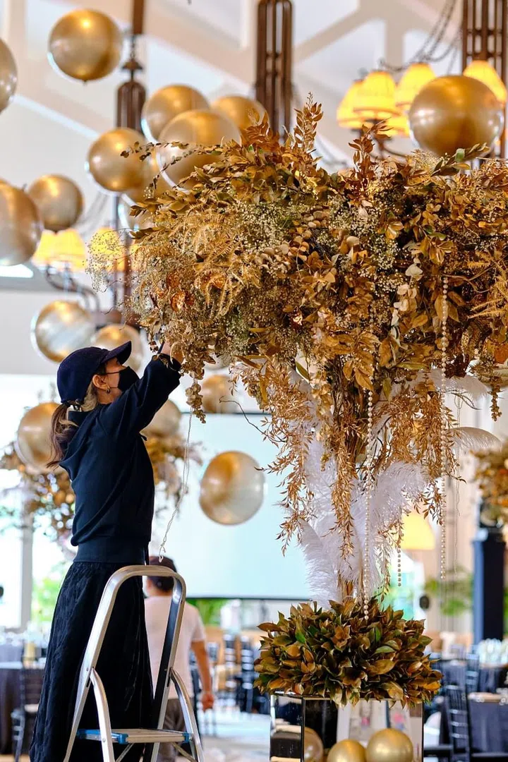 Fiore Dorato为新加坡嘉佩乐酒店婚礼打造的花卉墙。Photo Courtesy of Fiore Dorato