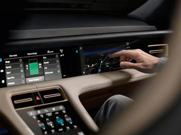 全新设计的驾驶舱结构明朗,少了原本保时捷的“排骨”式中控台。