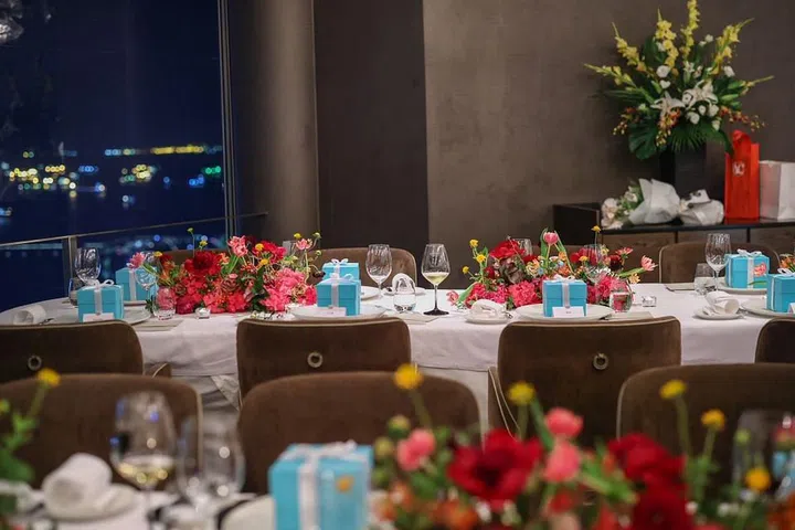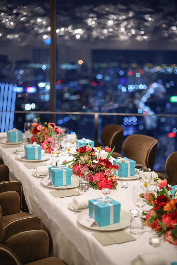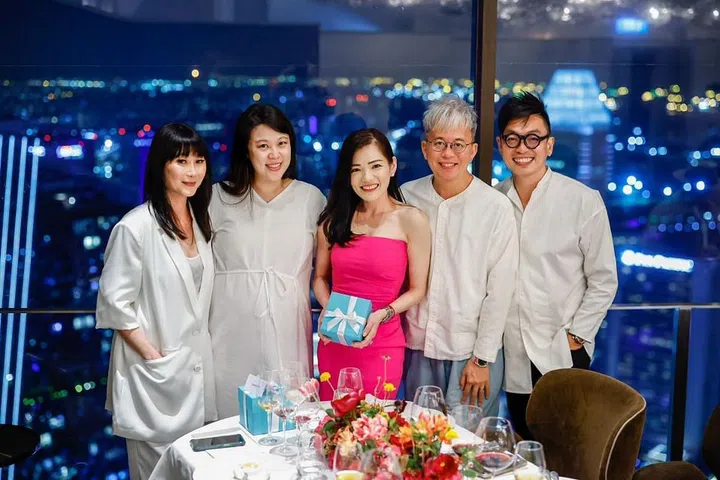 20多位好友聚集米其林二星餐馆Jaan By Kirk Westaway为名媛黄于秀(Angela Ng) 举办生日惊喜派对。
