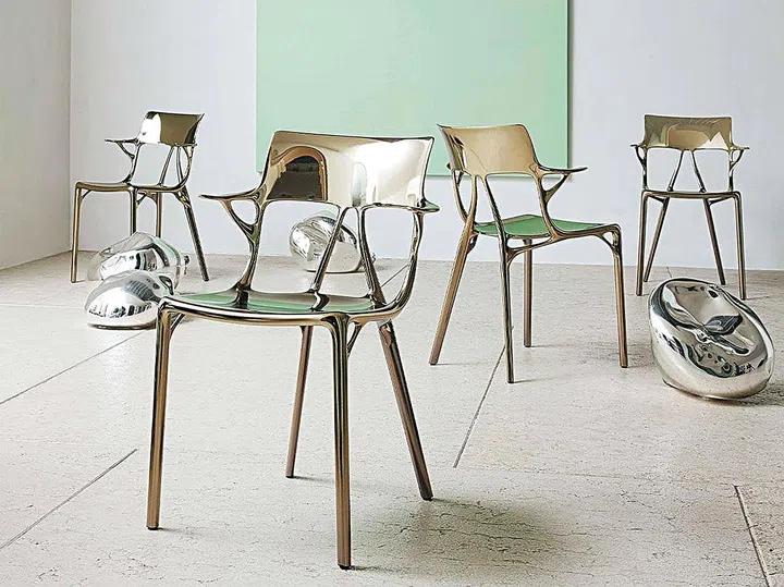 设计鬼才Philippe Starck为Kartell设计的得奖作品A.I.椅,采用可回收材质制作,今年推出了新版的A.I. Metal,金属感的外形,科幻前卫,为空间制造摩登美感。
