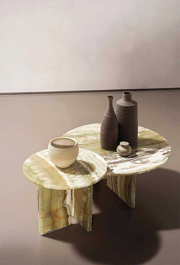 火红的奢华家具品牌Baxter也透过设计展示未来大方向,以玛瑙石制成的茶几、石材与金属混搭制成的办公桌,倡导环保永续理念。