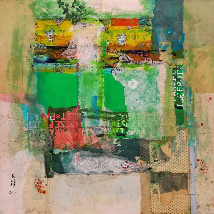 吴珉权的创作媒介多元化,包括水墨画、拼贴画、混合媒介、油画、陶瓷、纸浆、素描,其中以拼贴画尤为突出,充满创意巧思。谈到年轻艺术家如何找到个人创作风格,他觉得是不断寻找灵感,追求突破和创新,“这也是我一生都在追求的,即使到了现在,我仍然还在思考,如何运用更多的、不同的材料来创作。”