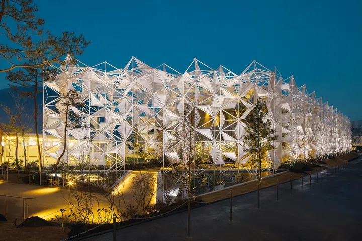博览会携手日本建筑、设计、音乐、影视等领域的顶尖大师,打造八大主题馆,包括隈研吾与八木保共同设计的Earth Mart,灵感源自农村生活,探讨粮食循环议题;妹岛和世与西泽立卫创立的建筑事务所SANAA操刀设计的Better Co-Being,以无屋顶、无墙壁的设计,传递开放与共享的理念。