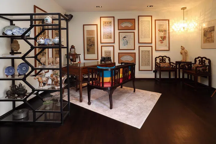 蔡华新喜欢旅游,平时出国看到喜欢的艺术品都会把它带回家,变成家里的装饰品,他家其中一个房间就打造为收藏古董和画作的收藏房。他的一大乐趣就是坐在收藏房里欣赏自己的藏品,不少都收藏超过10年。
