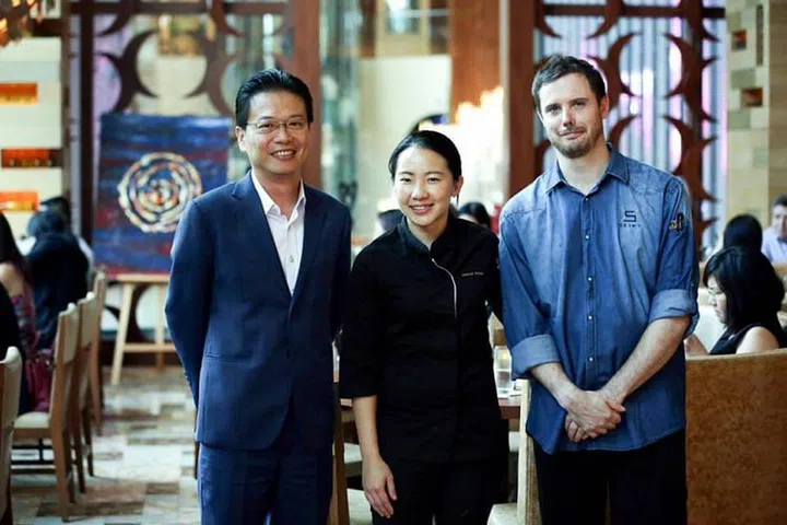Cheng Heng Chew, Singapore Country Manager, American Express, Chef Janice Wong and Chef Chris Hibbert (SKIRT at W Singapore – Sentosa Cove)
