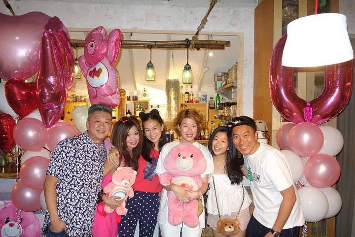 本地名媛Loi Yan yi 特别喜欢Carebear ,不论到哪里都会把玩具熊带在身边。日前,她就在餐厅Morsels办了一个别开生面,以Carebear为主题的生日会,欢庆40岁生日。(左起)Loi Pok Yen、Sylvia Tong、Lynn Yeow de-Vito、Loi Yan Yi、Christy Loi以及Rodney Loh。