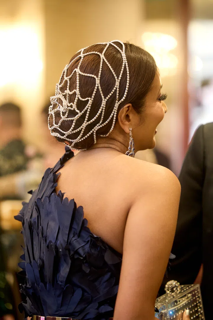 Paige Parker 一向热衷在造型中融入本地设计师的作品,以实际行动支持本地创作。这次,她选择佩戴本地品牌 “The Girl With a Hat” 的头纱,延续她对本地设计的支持。