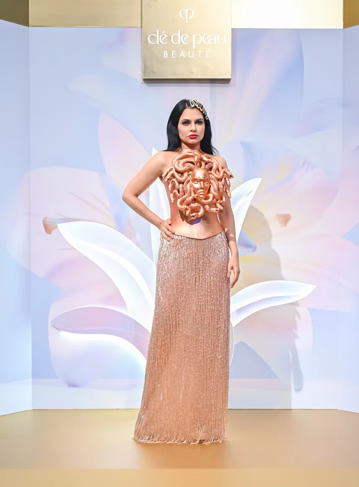 Lydea Tan 身着Rick Owen 剪裁创新的礼服,张扬中展现时尚魅力的发型让整体造型更完整,展现浓浓的个人魅力和态度。