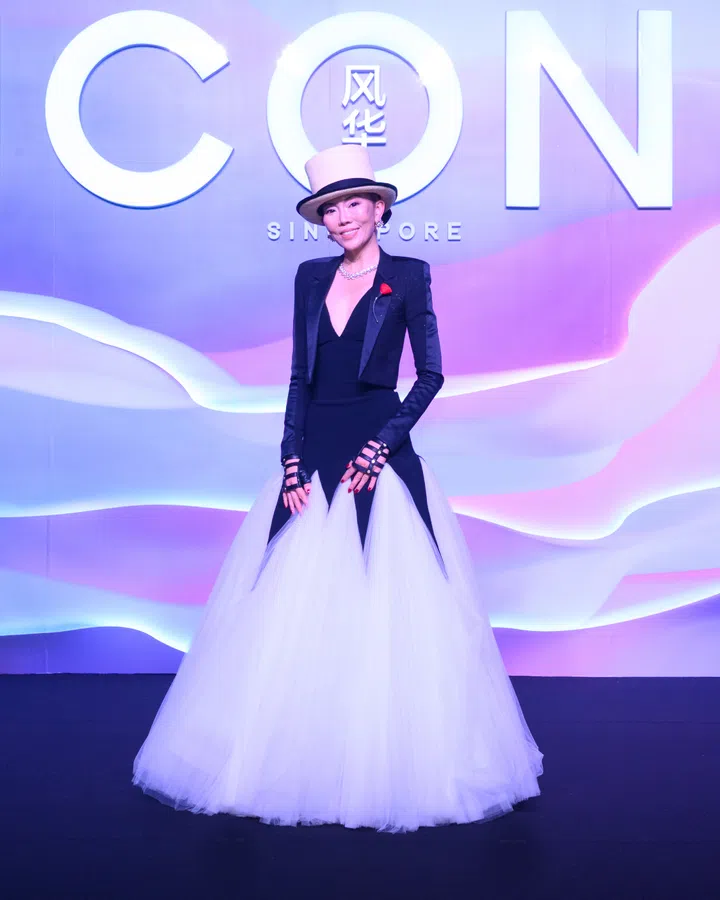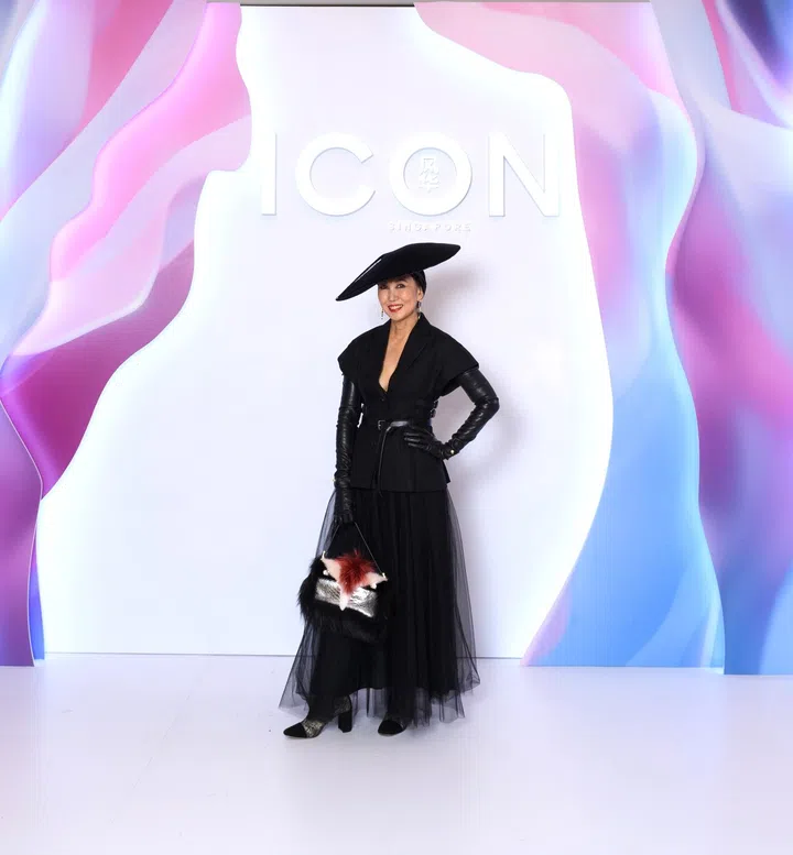 Dr. Iroshini Chua身着Oscar de la Renta 2019年秋季系列礼服,网状的头饰有画龙点睛的效果。