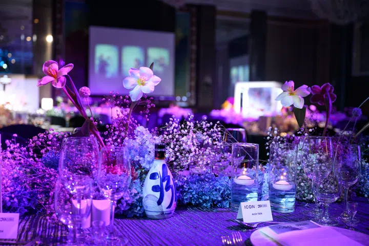 本地知名花艺品牌 Fiore Dorato为各位贵宾们精心设计餐桌花艺,为晚宴增添浪漫气息与视觉美感,也完美诠释风华的美学精神。