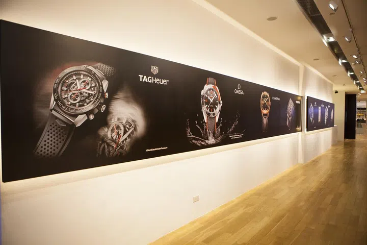 Stunning walkway visuals featuring some of the luxury horology and jewellery pieces through a series of video walls, light animation and stunning photography!
