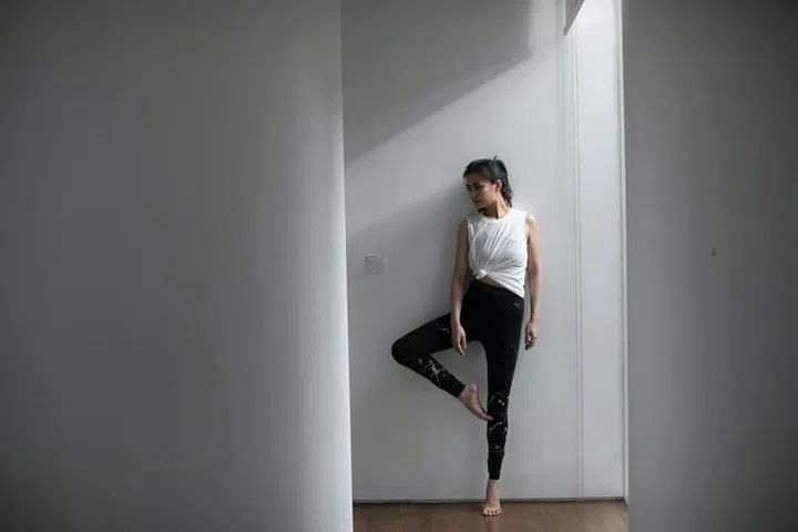 除了HIIT和F45这些高强度运动,Jilly 也通过瑜伽舒展身体。