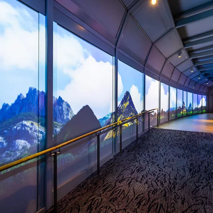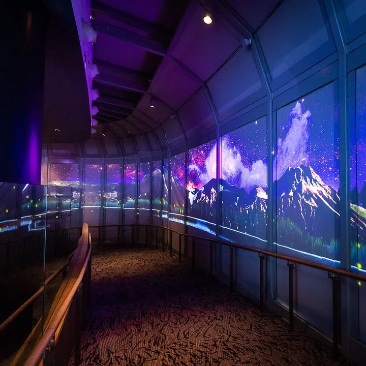 灯光秀中展示了黄昏到黎明的影像,象征从过去一年的黑暗世界中重拾新希望。壮观的自然风光,将带领顾客想起昔日旅游的美好时光。另外,也可在展览中看到富有启发性的鼓励话语和引言。