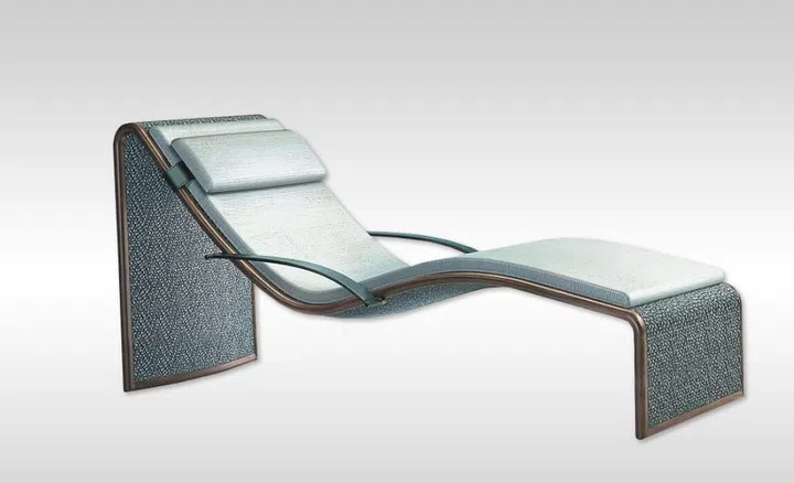 Armani Casa今年推出的家具与织品,从形体、纹理到图案都表现出轻盈如风和山水流动的东方意象,家具造型简约及带有禅风,意大利纺织品牌Rubelli制作的织料印有传统日式花木和风景图腾,覆盖着椅垫、床架、屏风和桌椅表面。其中一款 Onda(意大利语,波浪的意思)休闲躺椅,弯曲的线条如同浪涛,浅蓝色椅垫面料和椅身的之字形纹理折射出波光水影,让人想起著名日本浮世绘版画《神奈川冲浪里》。