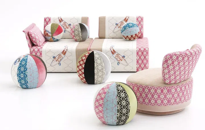 图腾是文化的表征,荷兰设计师Edward Van Vliet就开门见山的以鲤鱼图案和日式禅风拼贴印花布料向东瀛文化致敬。设计师在2009年首次为Moroso设计Sushi系列,后来将这一主题延伸出Karkaoma长沙发、Juju单人沙发、Donut圆形椅垫和Joy球形靠枕等作品,造型小巧精致且色彩缤纷,就像日式餐厅一字排开的各色寿司,任君选择,这就是Sushi系列名字的由来。