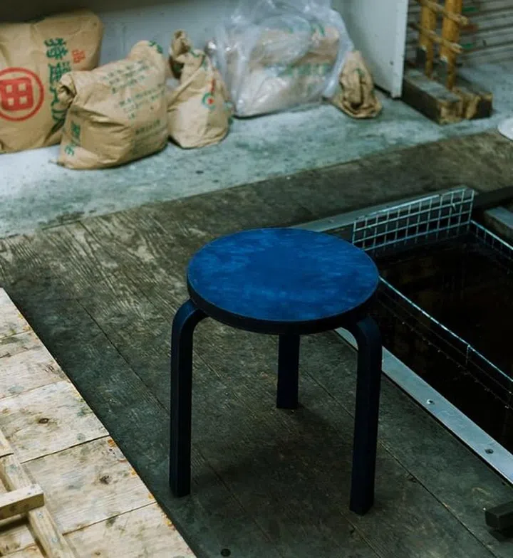 Artek携手日本德岛县Buaiso工作室,以日本传统蓝染工艺为Alvar Aalto的经典Stool 60三脚凳披上靛蓝色外衣,营造日式蓝染布料和丹宁色的独特色彩,体现浓浓的东瀛风。这款重绎经典的限量凳子分为漆面和无漆面两种设计,前者推出100张,后者仅推出十张,只供应日本市场。