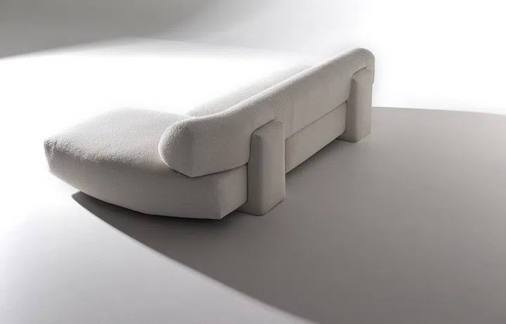 西班牙设计师Patricia Urquiola舍图腾取形体,以大自然环境为意象为Moroso打造一款兼容具象和写意的Gogan沙发。Gogan,日文是护岸的意思,即是堆积在河流与湖泊岸边的石头,长年被流水冲刷而形成光滑的表面。这款以聚酯材料包裹木质架构的沙发,就像护岸石般有着浑圆的外观,背后两根L字形结构撑起沙发底座,就像岸边的石头悬浮在水面上;毛茸茸的面料与石头的刚硬意象形成鲜明对比,丰富了设计的层次和趣味。