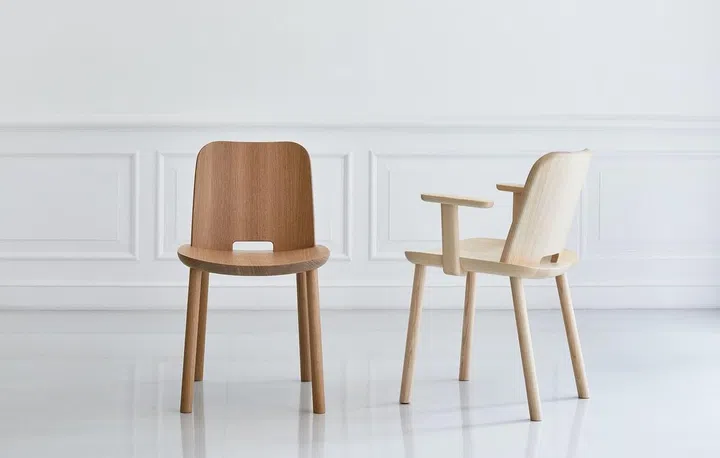 不得不提踏入90周年的日本木质家具品牌Maruni,发祥于广岛,近年邀得设计大师深泽直人(Naoto Fukasawa) 出任艺术总监,将品牌创作于60年代的Hiroshima Chair发扬光大,蜚声国际。品牌最新推出的Fuku系列椅子,由英国名师Jasper Morrison操刀,微弯的椅座和椅背,让这款没有坐垫的实木椅子提供极高的舒适度,并有或无扶手两种类型供选择。