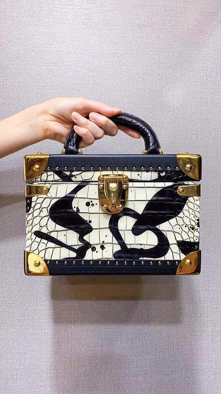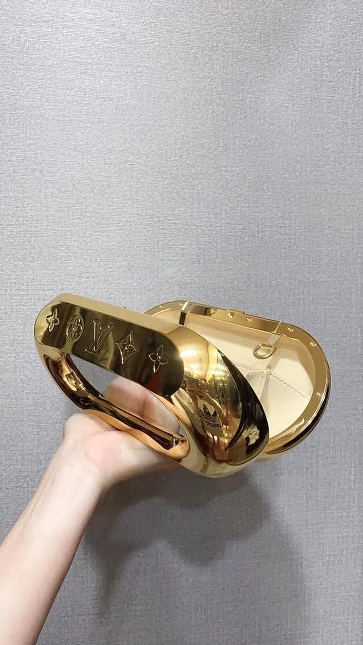 Minaudière Link 手袋将2021春夏秀场上首次亮相的Edge链条创意放大,点缀LV标识和Monogram花卉铭纹,包裹绵羊皮内衬,并以椭圆形平面镜填充中央。Jeffrey认为它和西装是绝配。