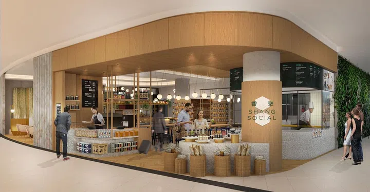 香格里拉集团首次从酒店进军餐饮零售领域,在星耀樟宜开设第一家独立中餐厅“香聚”(Shang Social)。设有220个作为的这家餐厅致敬中国三大特色菜系——粤菜、淮扬菜和川菜,菜单在忠于菜系的地道风味与精髓的基础上,将传统与现代手法相融合,呈现经典中式佳肴。餐厅内包括用餐空间“DINING”、休闲市集空间 “MRKT”及酒吧区“BAR”,这些独特的设计将迎合客人不同的就餐需求。
