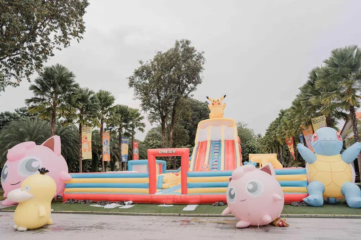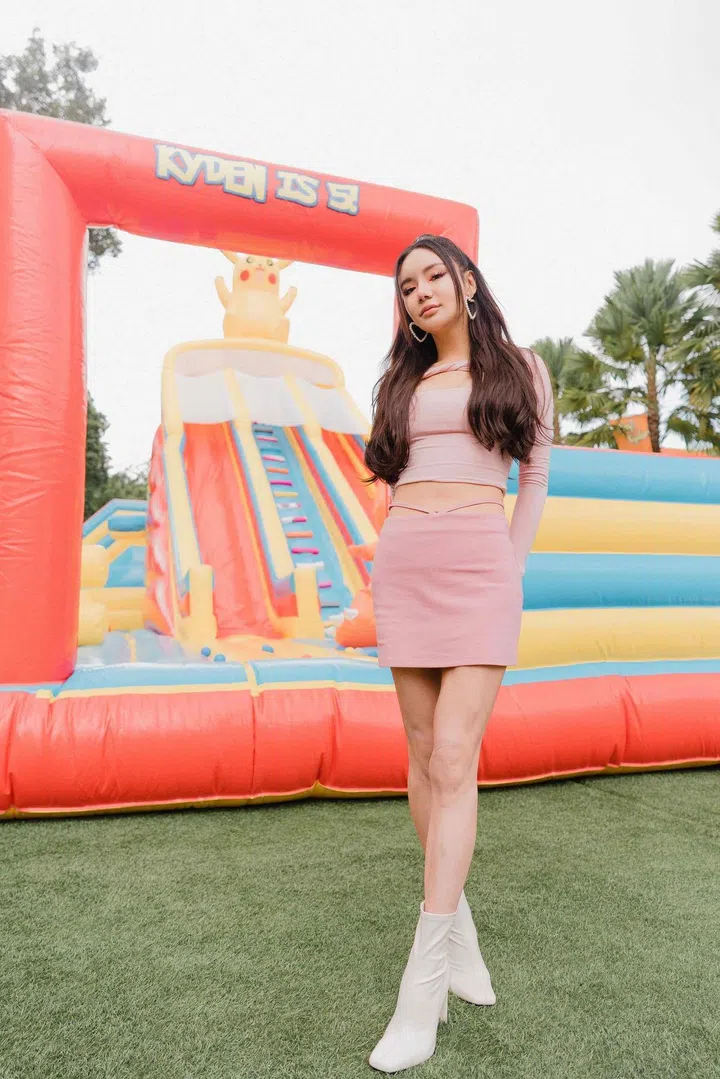 今年的生日派对也是气派十足,Kim在圣淘沙Barrack Hotel 大广场搭建超过三层楼高的巨型充气城堡,充气城堡重达1000公斤。