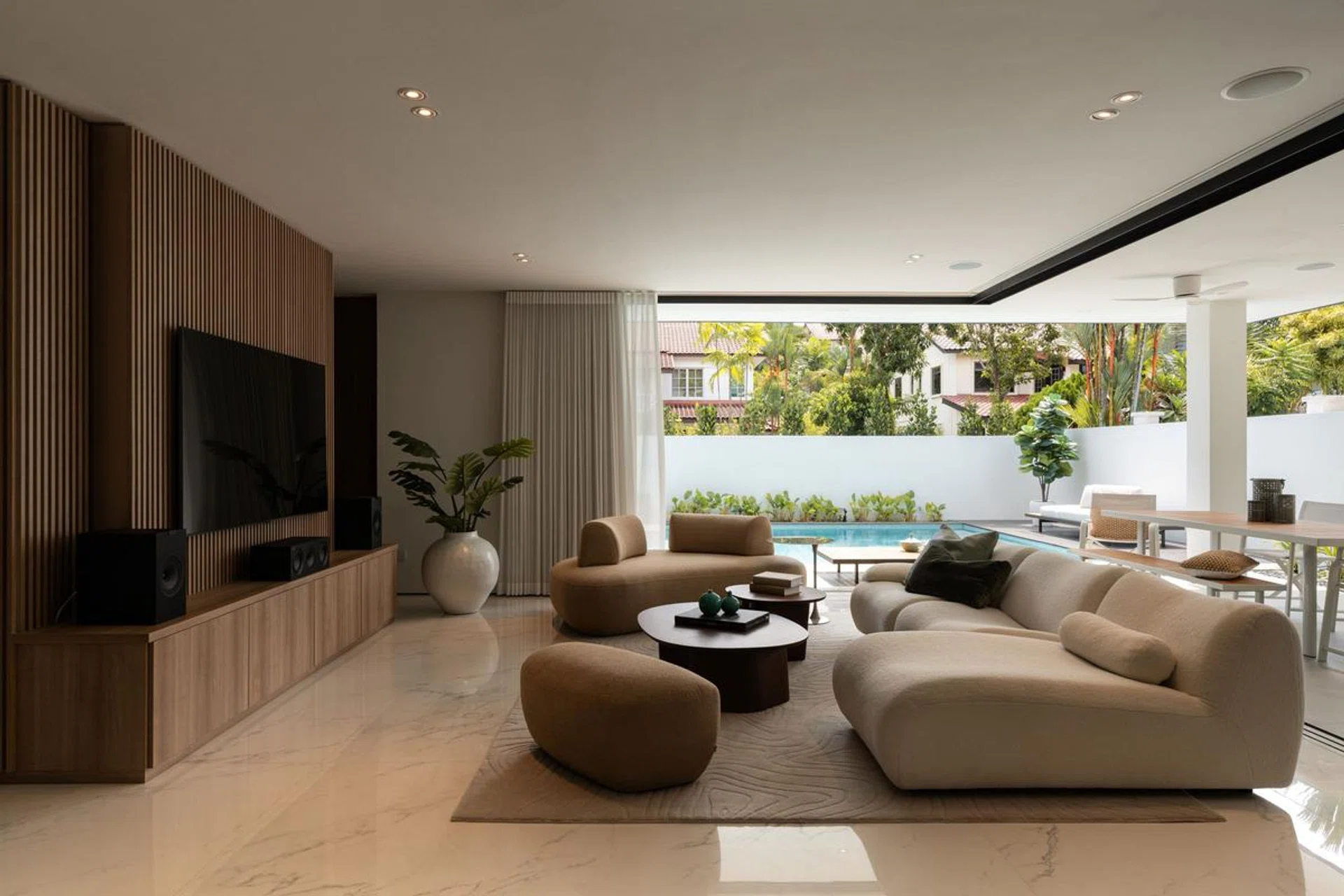 King Living户外家具面料的一大亮点在于具有卓越的防水、防污和耐磨性,让户外家具即便经受热带气候的风吹雨打,也能保持如新。Photo: ACO Architects and Architology Interiors