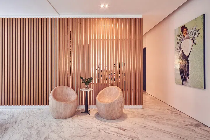 Christopher Guy总部目前设在新加坡,许绒绒也在八个月前迁入位于本地的新家。这栋私人公寓临近市区,但四周草木扶疏,环境清幽。位于一楼地面单位虽然筑起高墙分隔公共区域与私人领域,但挡不住墙外花园绿意。枝桠茂盛的大树遮住了刺眼的骄阳,却又能适当地引入自然光;墙内还有一方绿地,让三岁的小孩有足够的活动空间。“当初找房子时,这栋公寓是我最钟意的,开阔的设计引进室外自然光,让室内空间温暖通透,这个空间动线也非常适合我儿子。”