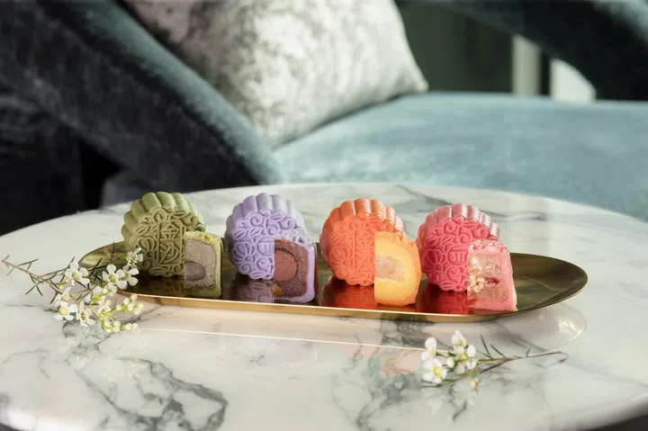 瑞吉酒店(The St. Regis Singapore)今年的冰皮月饼走清爽风,新口味有:香橙抹茶白豆沙腰果(Citrus & Japanese Matcha Green Bean Paste with Cashew Bits)、椰子菠萝蜜开心果酒心(Coconut & Jackfruit Lotus Paste with Pistachio Truffle)和青柠红茶百香果酒心(Lime Red Tea with Passionfruit Truffle)。其他受欢迎的招牌口味如顶级猫山王冰皮月饼(Pure 'Mao Shan Wang' Durian)和黑芝麻蓉咸花生巧克力冰皮月饼(Charcoal Black Sesame Paste with Sea Salt Caramel Truffle),也在万众期待下回归。