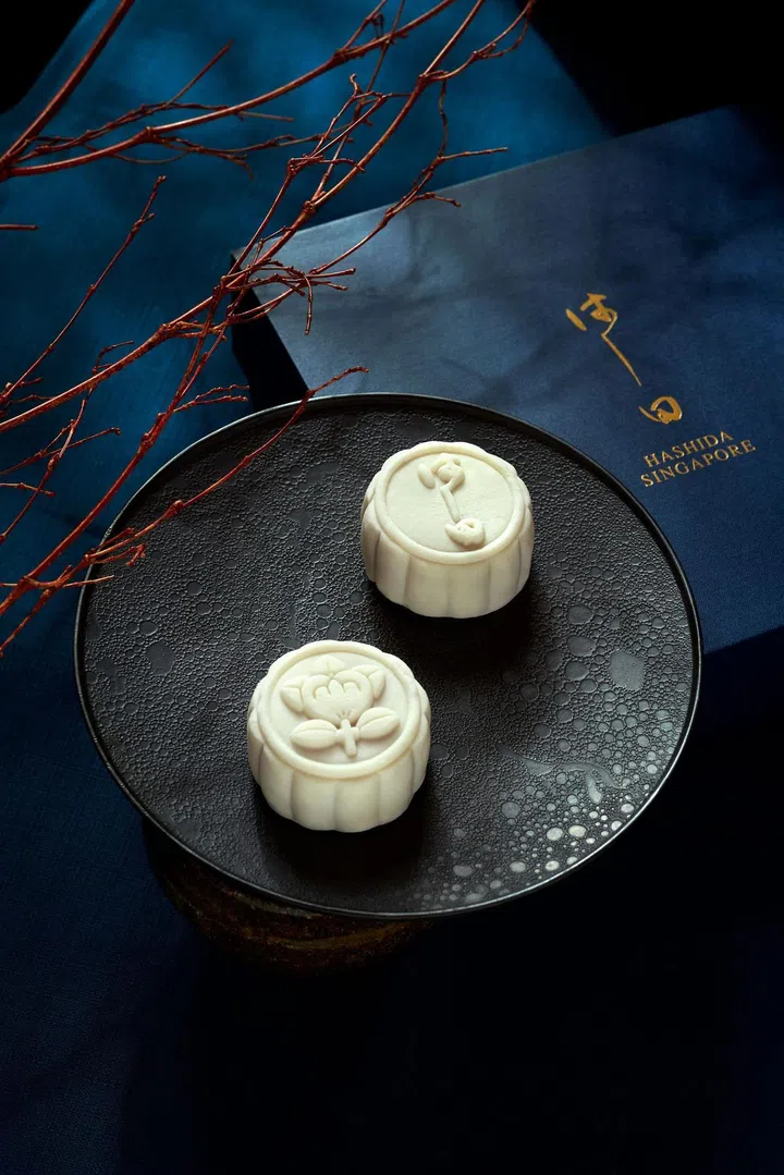 为庆祝本地精致餐馆Hashida十周年纪念,主厨兼创办人桥田建二郎(Kenjiro Hatch Hashi)特别在中秋佳节期间推出月饼,灵感自然离不开日本。其中一款“Sakura Blossoms"冰皮月饼,在日本白豆沙馅内融入樱花花瓣,再配以甜美的醋栗果酱,带来隐隐的花香和甜味。另外,身为Krug大使的他,也从Krug年度食材“柠檬”中汲取灵感,以爽的新鲜柠檬、日本茄子、日本白豆沙、蜂蜜和柠檬皮创造“Lemon Nasu”冰皮月饼。
