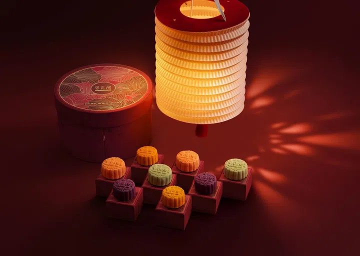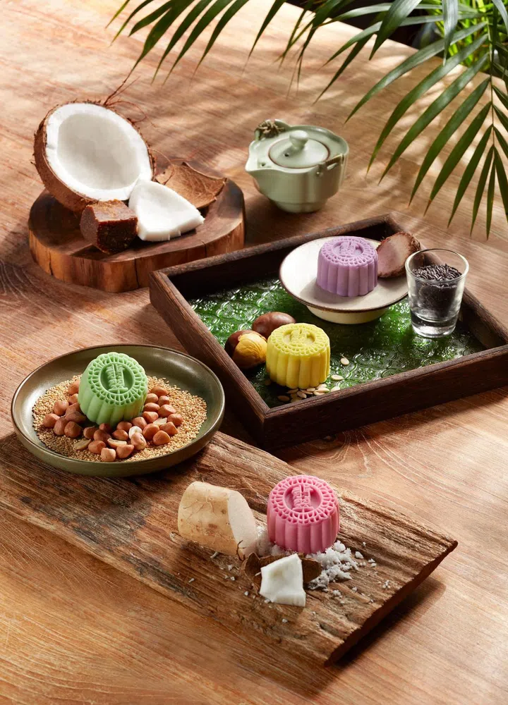位于圣淘沙名胜世界(Resorts World Sentosa)的风水廷精品粤菜馆(Feng Shui Inn),今年主打四款全新饼皮月饼口味:乌龙茶枸杞红枣月饼(Oolong Tea Mooncake with Dates and Wolfberries)、橙皮奶黄野蜜月饼(Custard and Wild Honey Mooncake with Tangerine Peel)桂花酒柑橘月饼(Osmanthus Wine Citrus Mooncake)和桑葚紫薯月饼(Mulberry and Purple Potato Mooncake),养生又美味。传统广式月饼口味种类也相当精彩,当中引人瞩目的有黑芝麻夏威夷果橙皮月饼(Black Sesame Mooncake with Macadamia and Tangerine Peel)、乌枣绿茶月饼(Smoked Dates and Green Tea Mooncake)、麻辣什锦果仁肉干月饼(Mala Mixed Nuts Mooncake with Bak Kwa),咸、辣、甜的组合,肯定能刺激你的味蕾。